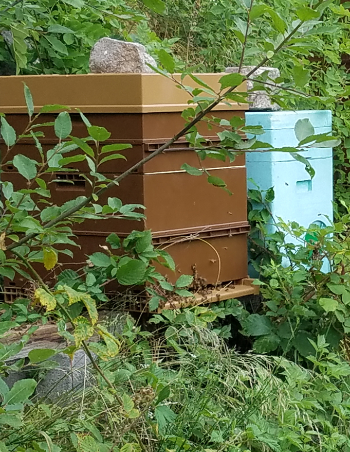 Posé sur le toit de la ruche